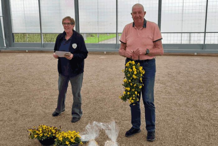 Dan de jubilarissen. De secretaris had van te voren aangegeven dat de exacte data van aanvang van deze leden niet te achterhalen was daar dit in de administratie van de vereniging niet terug te vinden is. Wel is het zo dat de jubilarissen zeker 25 jaar lid van onze jeu de boules vereniging zijn. Het zijn trouwens leden die niet alleen kwamen spelen maar zich ook op verschillende posities binnen de vereniging vrijwillig hebben ingezet.